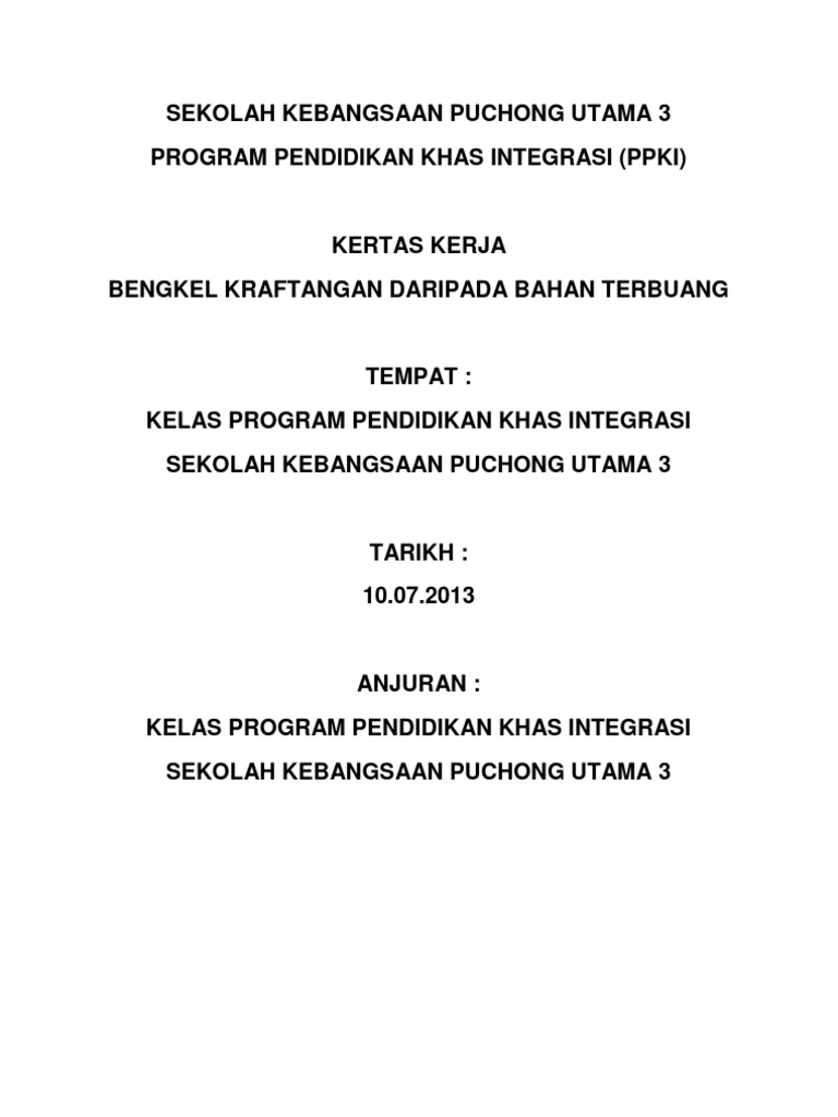 Kertas Kerja Program Bengkel Kraftangan Pdf
